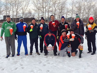 This Sunday, January 26th at 1pm, Brave Men, with Brave Hearts will take to the frozen tundra of Sherwood Forest for our Robbie Burns Run. The faint of heart need not apply as winter will test the intestinal fortitude of the participants. The past month, the NOBS Sunday touch players [sounds like a theater group] have braved everything Mother Nature has thrown at them. Wearing every imaginable piece of winter gear, they take the field Sunday after Sunday.
